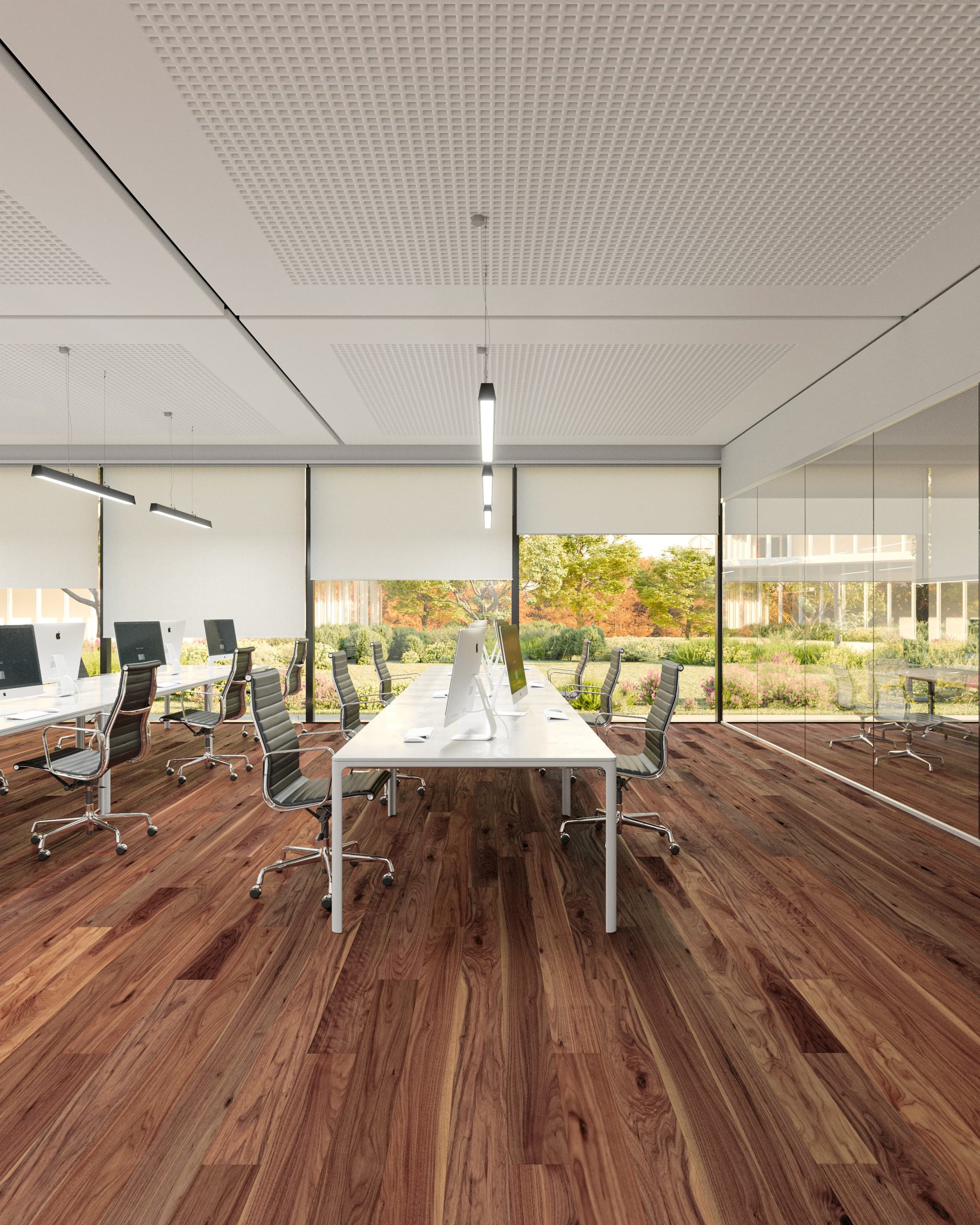 Nogueira Americana é conhecida pela riqueza das cores castanhas e pelo seu carácter ativo. Dependendo da classificação, a espécie pode ser consistente na cor ou mostrar um contraste incrível entre o borne e o cerne. A coloração escura e os nós trazem complexidade e carácter a qualquer contexto.
